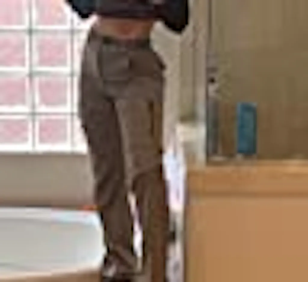 - Comfortable: Elastic inserts in the waist for adjustability. Button front with zip fly